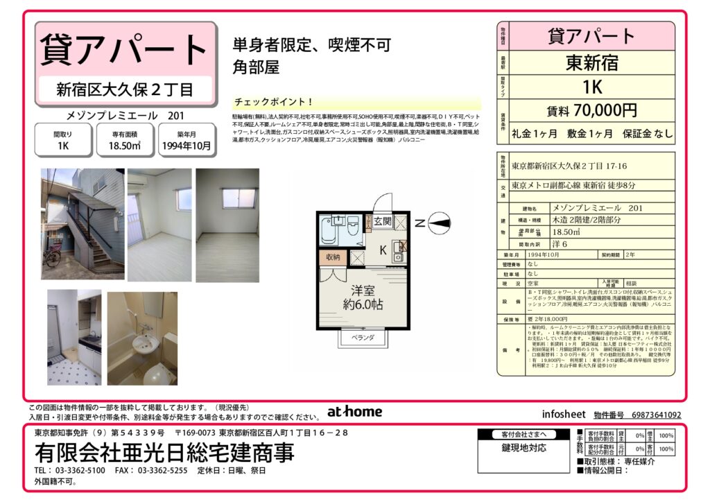 東新宿駅徒歩8分、西早稲田駅徒歩9分